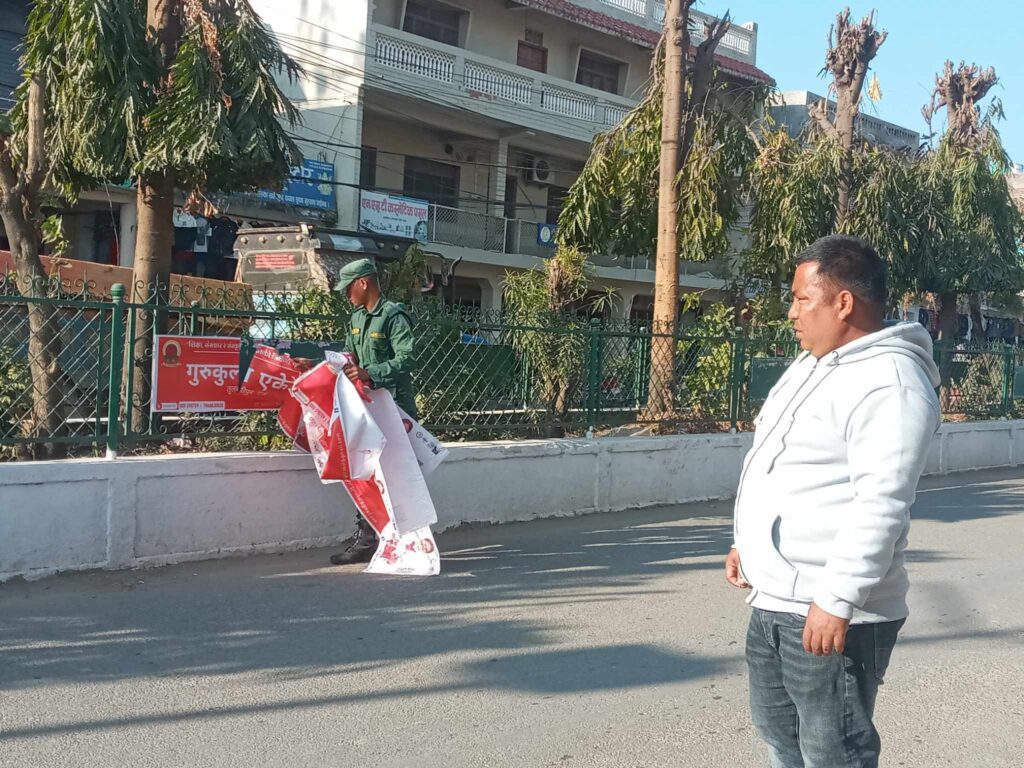 मेयर टीकाराम खड्काले स्वच्छाचारी रुपमा गुरुकुलले टाँगेका ‘अनाधिकृत’ बिज्ञापन हटाउन निर्देशन दिएपछि नगरप्रहरी परिचालन गरि बिज्ञापन हटाएका हुन ।