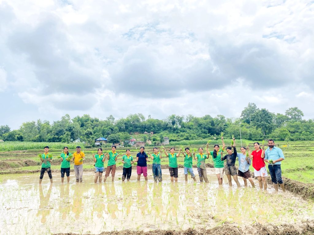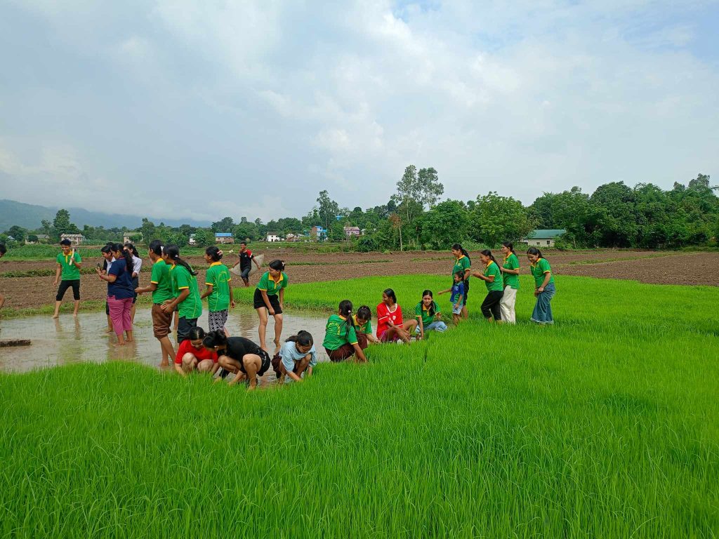 भिम मरासिनी, दाङ । आज असार १५ को हरियाली बिहानी। आकाश हल्का बादलले ढाकेको थियो। खेतमा चिरबिर स्वर र हाँसोको गुञ्जन । हरियो धानको बिरुवा र हिलो मिसिएको पानीबीच हरियो टीसर्ट लगाएका विद्यार्थीहरू मस्त खेलिरहेका थिए।