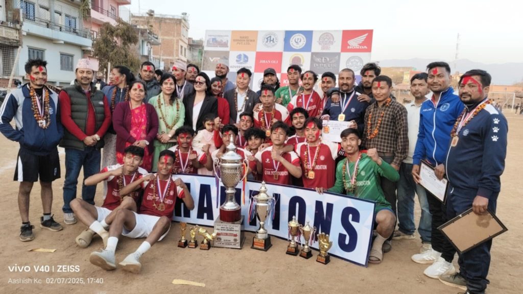 तुलसीपुर उपमहानगरपालिका वडा न ६ काे आयाेजना तथा युथ अफ तुलसीपुर र मदन भण्डारी स्पोर्ट्स क्लबको सहकार्यमा आज शुक्रबार सम्पन्न फाईनल खेलमा वडा न ८ लाई ४-० गोल ले पराजित गर्दै वडा न ६ ले उपाधी जितेको हो ।