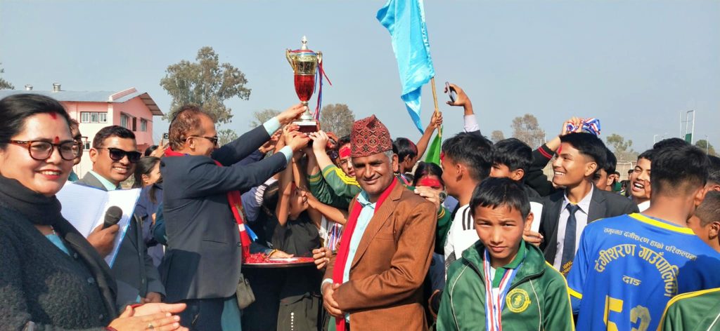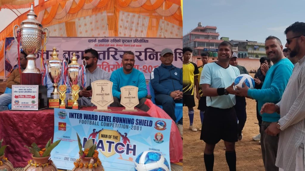 दाङ, ८ माघ । दाङको तुलसीपुरमा सञ्चालन भएको तेस्रो वडाध्यक्ष कप २०८१ कपको अपाधि रोयल रानागाउँ (बी)ले प्राप्त गरेको छ । तुलसीपुर उपमहानगरपालिका वडा नं. ३ को आयोजनामा भएको प्रतियोगितामा १० वटा क्लबहरुले सहभागिता जनाएका थिए । प्रतियोगितामा सहभागि क्लबहरूको प्रतिस्पर्धा पछि रोयल रानागाउँ ९बि० ले प्रथम स्थान हासिल गर्दै नगद ४० हजार, कप, मेडल र प्रमाणपत्र जित्न सफल भएको हो।