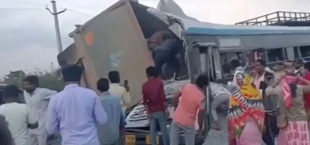 समाचार एजेन्सी एएनआईका अनुसार तेलंगाना सरकारद्वारा सञ्चालित टीजीएसआरटीसी बस ट्रकसँग ठोक्किएको छ।