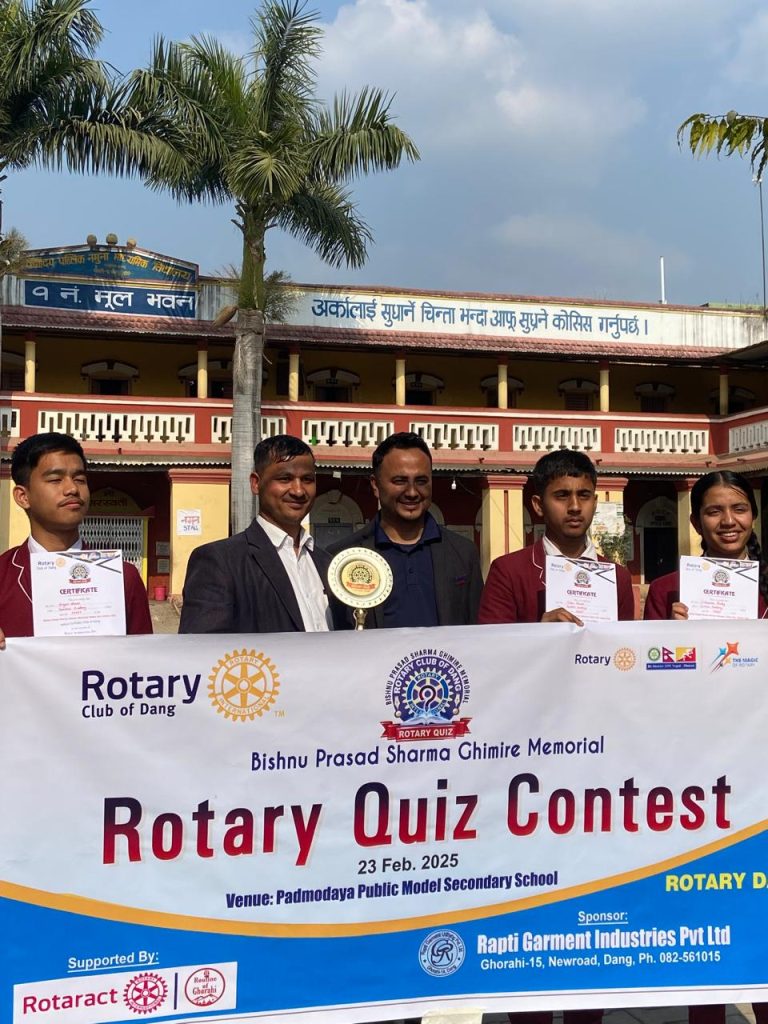 दाङ,११ फागुन ।विष्णु प्रशाद शर्मा घिमिरेको स्मृति तथा रोटरी डेको अवसरमा आयोजित रोटरी हाजिरी जवाफ प्रतियोगिता घोराहीमा सफलतापूर्वक सम्पन्न भएको छ।