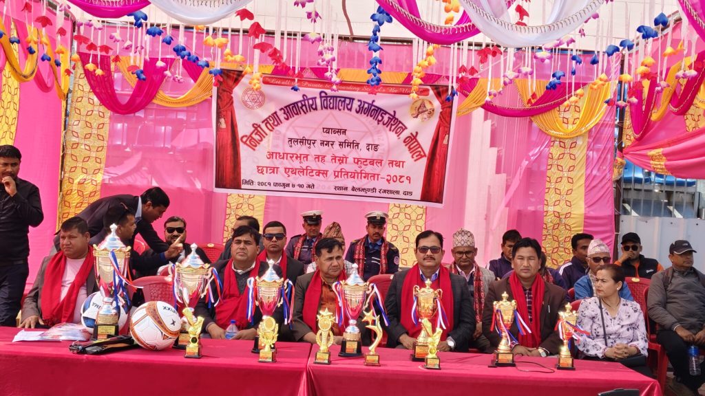 दाङ, ७ फागुन । निजी तथा आवासीय विद्यालय अर्गनाइजेसन नेपाल (प्याब्सन ) तुलसीपुरको आयोजनामा तेस्रो प्याब्सन छात्र फुटबल तथा दोस्रो प्याब्सन छात्रा एथलेटिक्स प्रतियोगिता सुरू भएको छ । आज दाङको बेलझुण्डीमा एक कार्यक्रमका बिच तेस्रो प्याब्सन छात्र फुटबल तथा दोस्रो प्याब्सन छात्रा एथलेटिक्स प्रतियोगिता सुरू भएको हो ।
