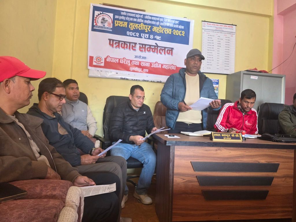 नेपाल घरेलु तथा साना उद्योग महासंघ तुलसीपुरको आयोजनामा   प्रथम घरेलु तथा साना औद्योगिक, सांस्कृतिक, पर्यटन, कृषि, व्यापारिक तथा प्रविधि प्रदर्शनी महोत्सव–२०८२ आयोजना हुने भएको छ। महासंघका अध्यक्ष लालबहादुर केसीले आइतबार पत्रकार सम्मेलन गरि महोत्सव गर्न लागिएको सार्वजनिक गरेका छन ।
