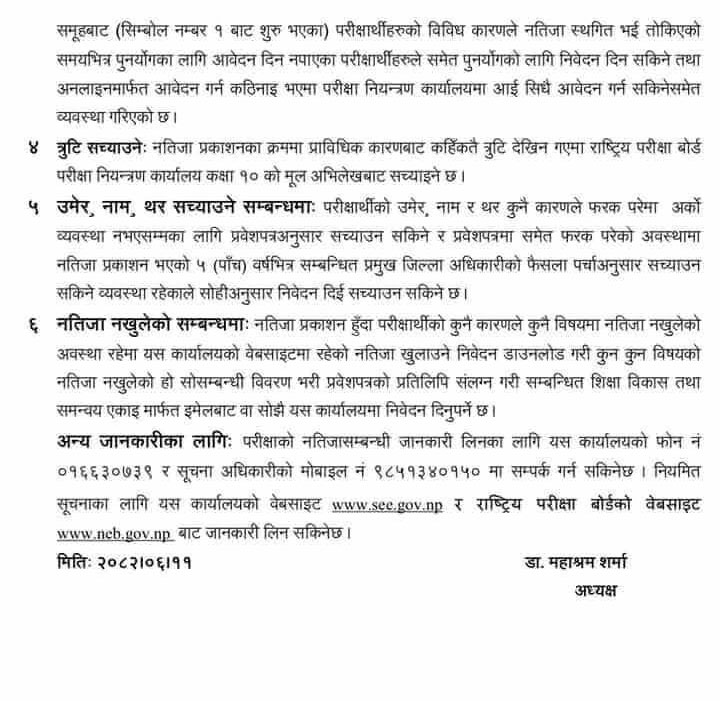 पूरक परीक्षा साउन २९ देखि भदौ ६ गतेसम्म सञ्चालन भएको थियो । गत वैशाखमा सञ्चालित वार्षिक परीक्षामा दुई विषयसम्म ‘नन ग्रेडेड’ भएका तथा अनुपस्थित भएका विद्यार्थीहरूका लागि बोर्डले पूरक परीक्षाको अवसर दिएको थियो ।