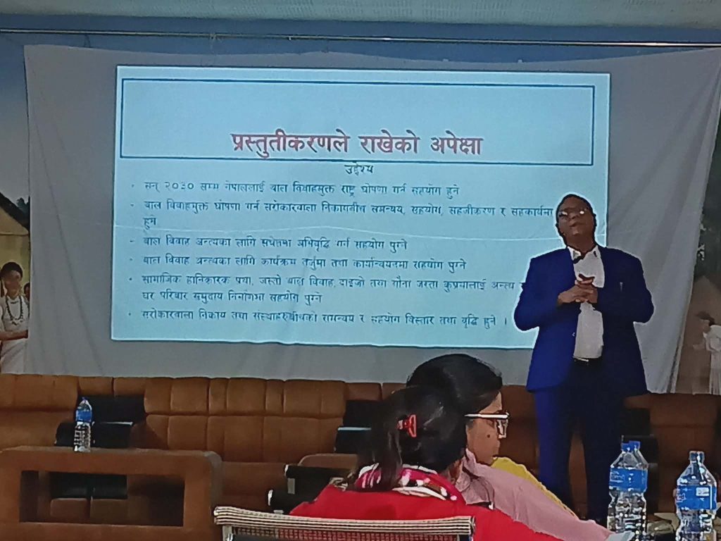 सन २०३० सम्म नेपाललाई बाल विवाह पूर्णरूपमा अन्त्य गर्ने योजना अनुसार पालिका स्तरमा यस्को प्रभावकारी कार्यन्वयनका लागि यो कार्यक्रम गरिएको जनाइएको छ ।